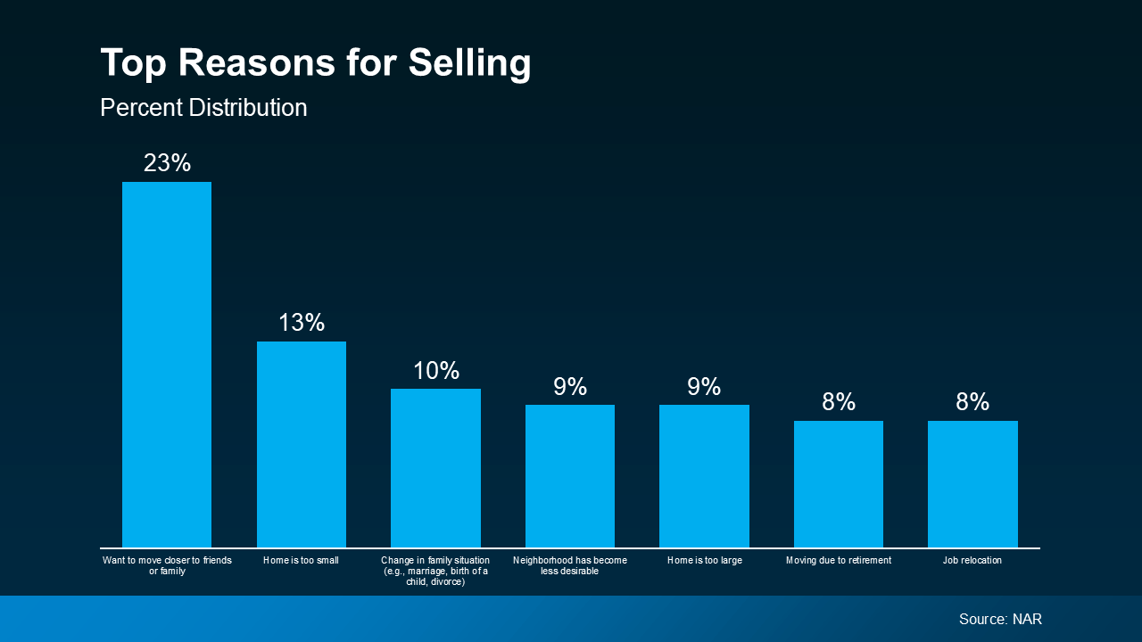 An annual report from the National Association of Realtors (NAR) offers insight into why homeowners like you chose to sell. All of the top reasons are related to life changes. As the graph below highlights: